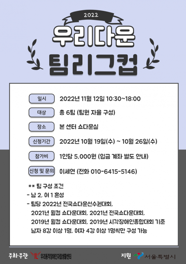 모집 | 제 1회 우리다운 팀리그컵 참가자 모집