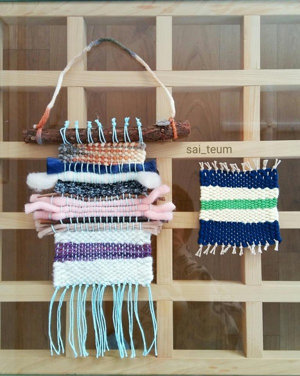- 2주차(2016.8.1.): 벽걸이장식 제작(다양한 굵기, 색상, 질감의 실뿐만 아니라 마른 꽃, 나뭇가지 등을 이용하여 벽걸이 장식 제작)