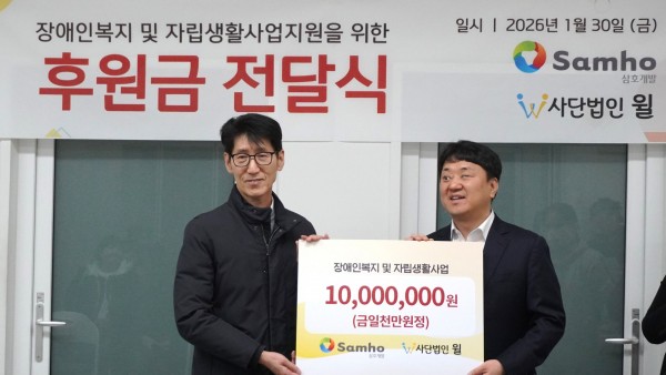 소식 | 삼호개발, 사단법인 윌에 장애인복지와 자립생활 지원을 위한 후원금 전달