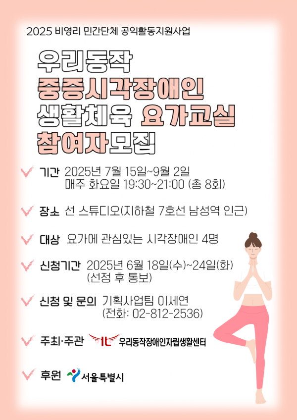모집 | 2025년 우리동작 중증시각장애인 생활체육 요가교실 참여자모집